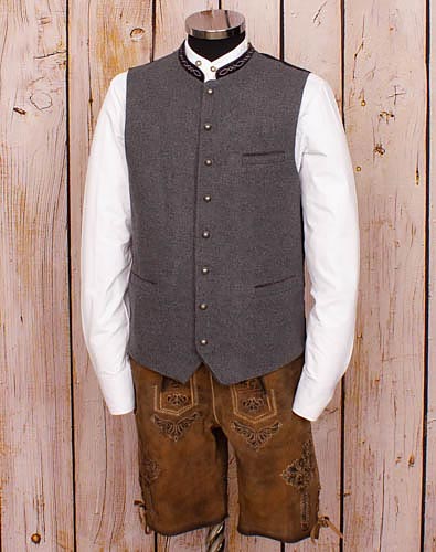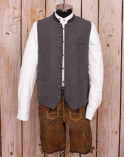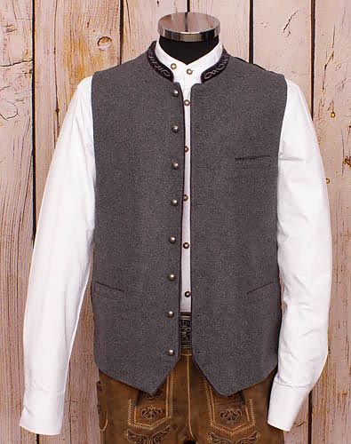 Traditionelle Weste mit Samtstehkragen in der Farbe grau.