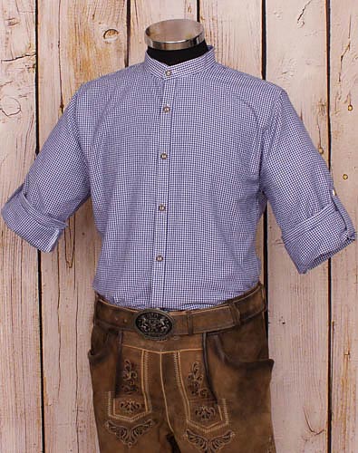 Schickes Trachtenhemd mit Stehkragen in blau.