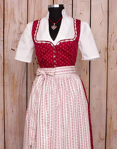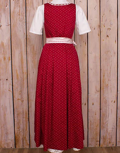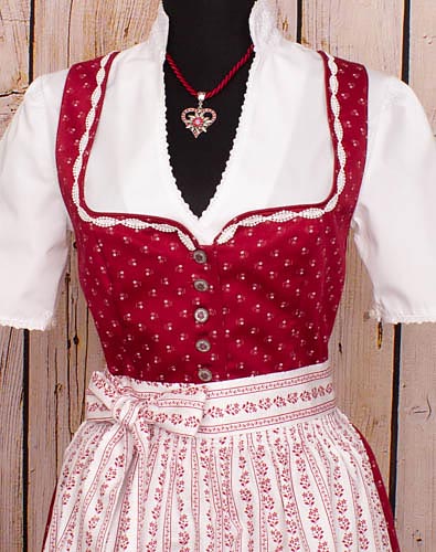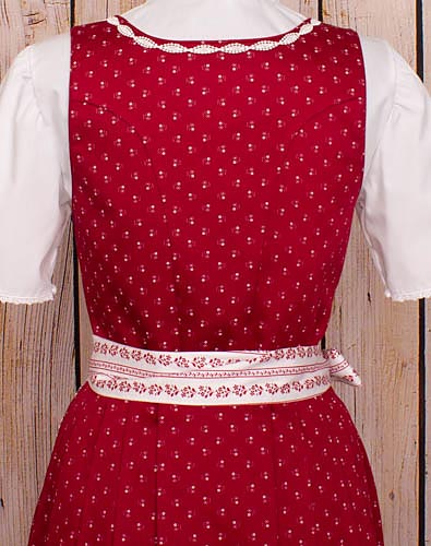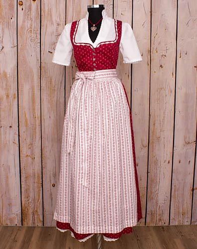 Fesches langes Baumwolldirndl in den Farben rot und weiß.