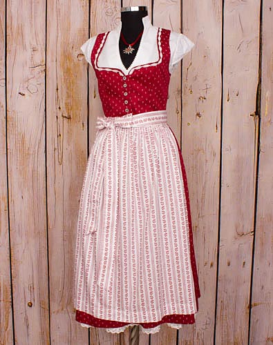 Fesches Midi Baumwolldirndl in den Farben rot und weiß.