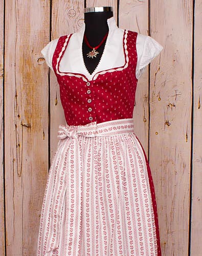 Damen, Dirndl, midi, rot, weiß, Baumwolle